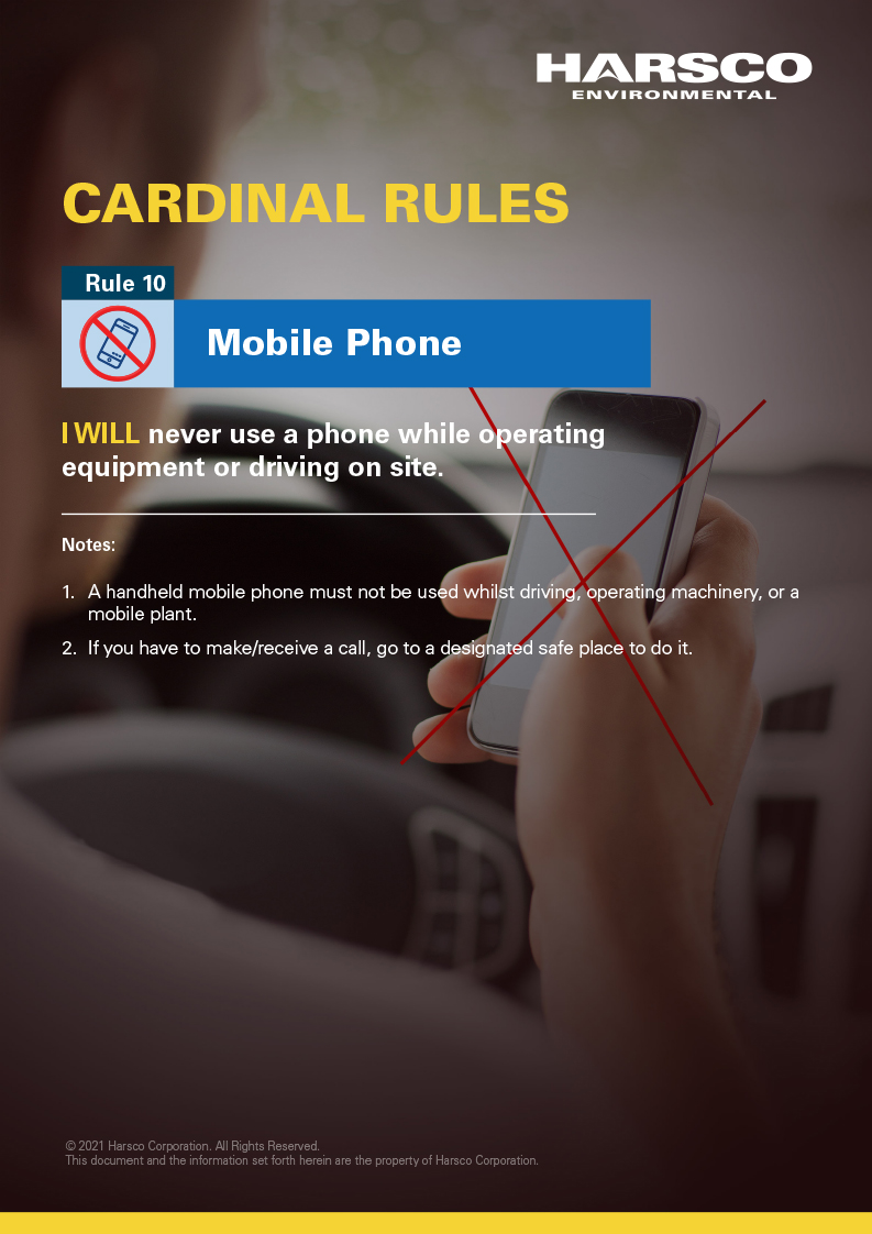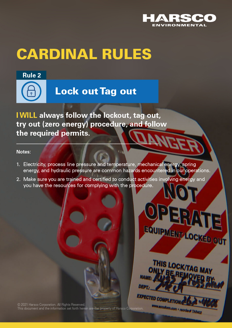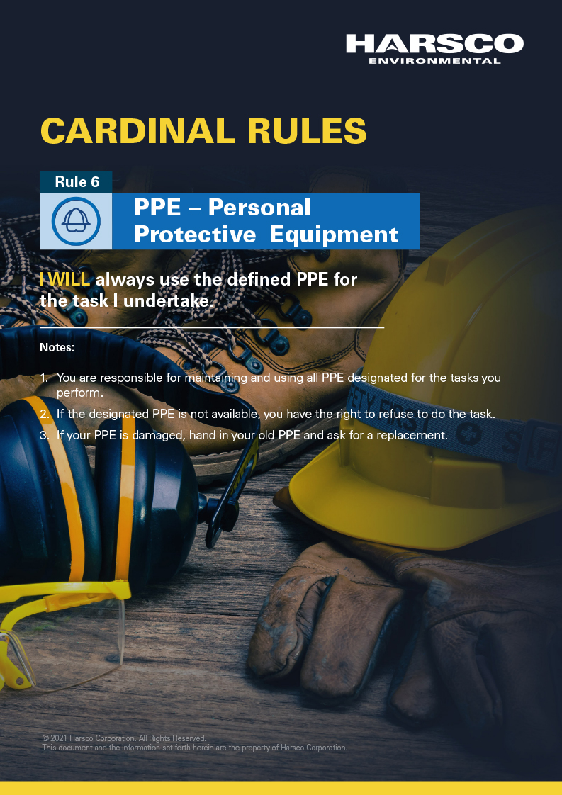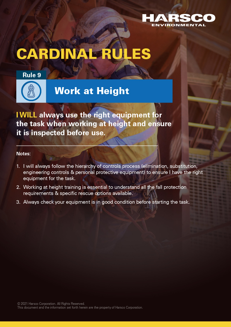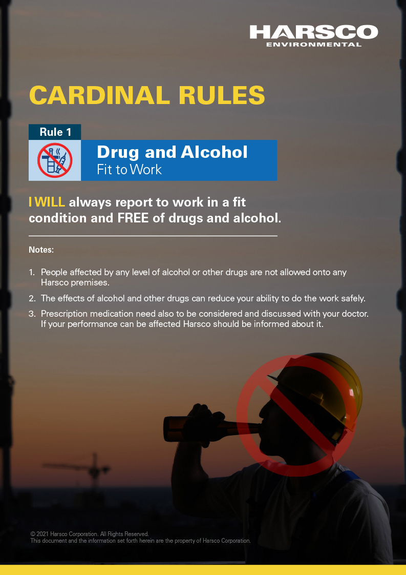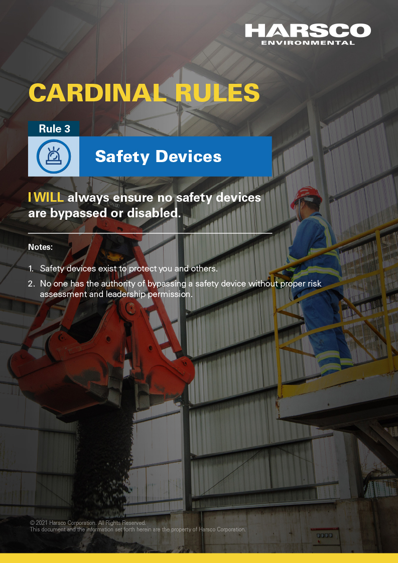 Cardinal Rules have been established to help prevent potentially fatal risks across Harsco. Used together with management risk controls they will produce the safest way to perform our activities.