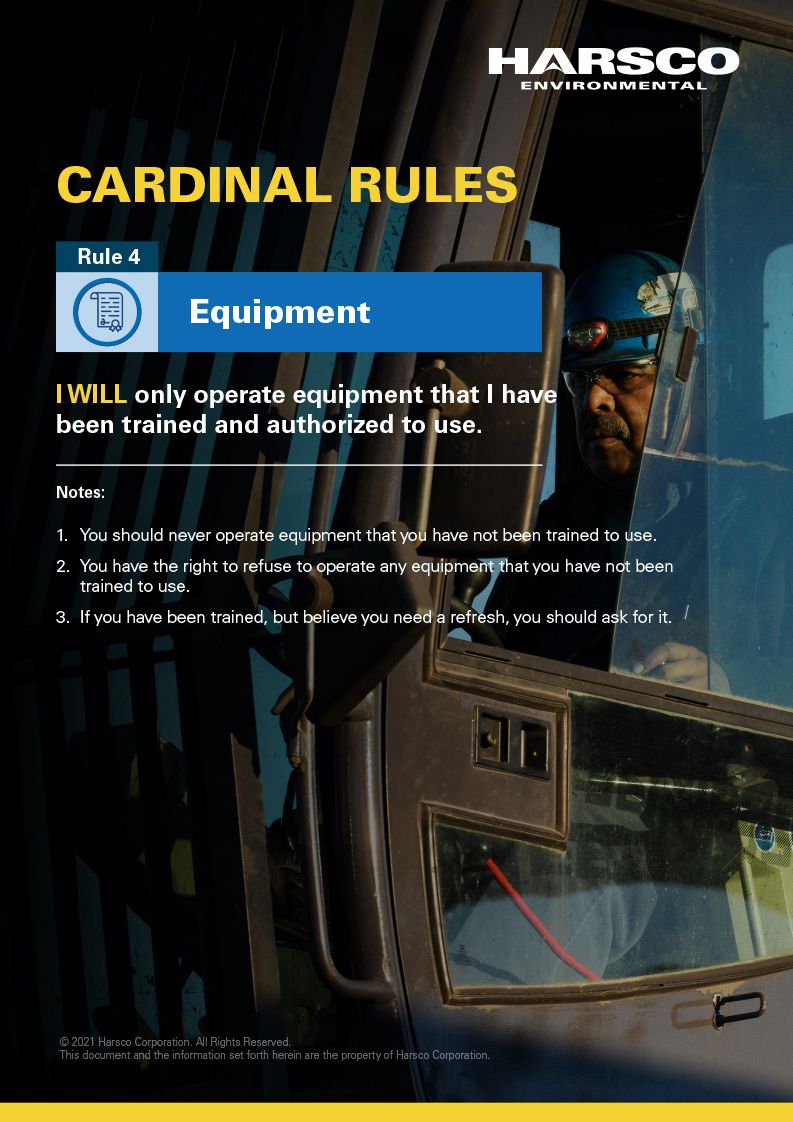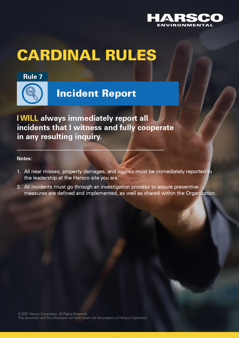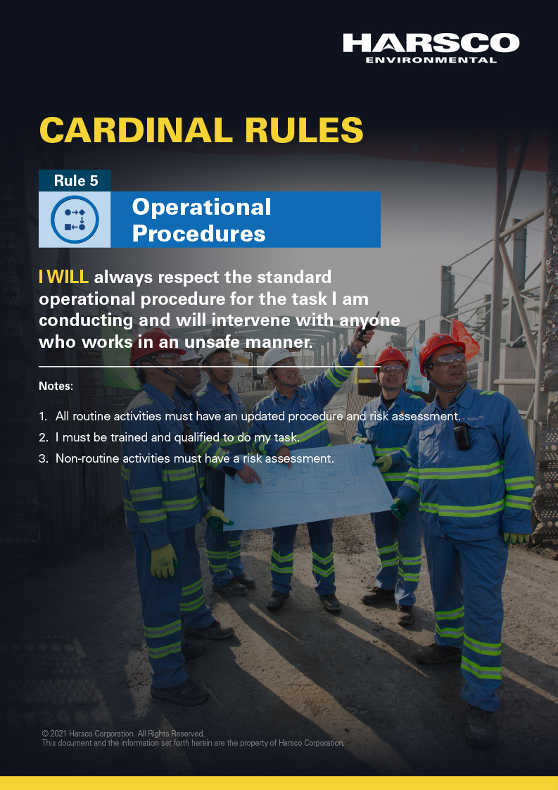 Please reach out to our team if you have any questions or concerns regarding the Harsco Cardinal Rules.